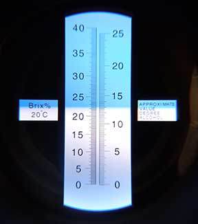 14 ოქტომბერს, რეფრაქტომეტრით გაიზომა შაქრის შემცველობა ნაკვეთზე, რთველამდე კიდევ ველოდებით მომატებას.